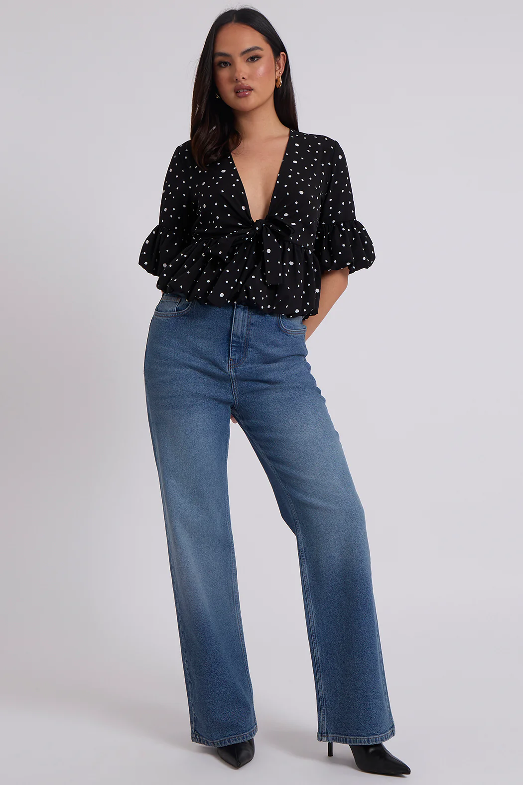Our Carolina Bubble hem top will add stylish impact to your wardrobe with tie detail and peplum sleeves.
