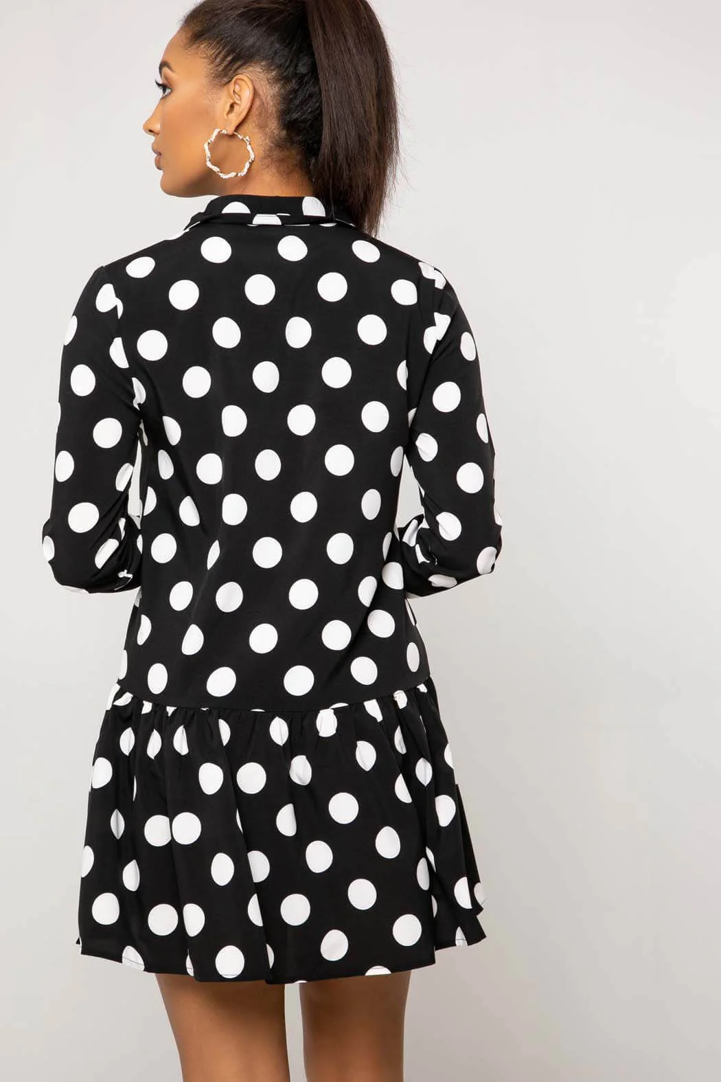 Cleo Black Spot Frill Mini Shirt Dress