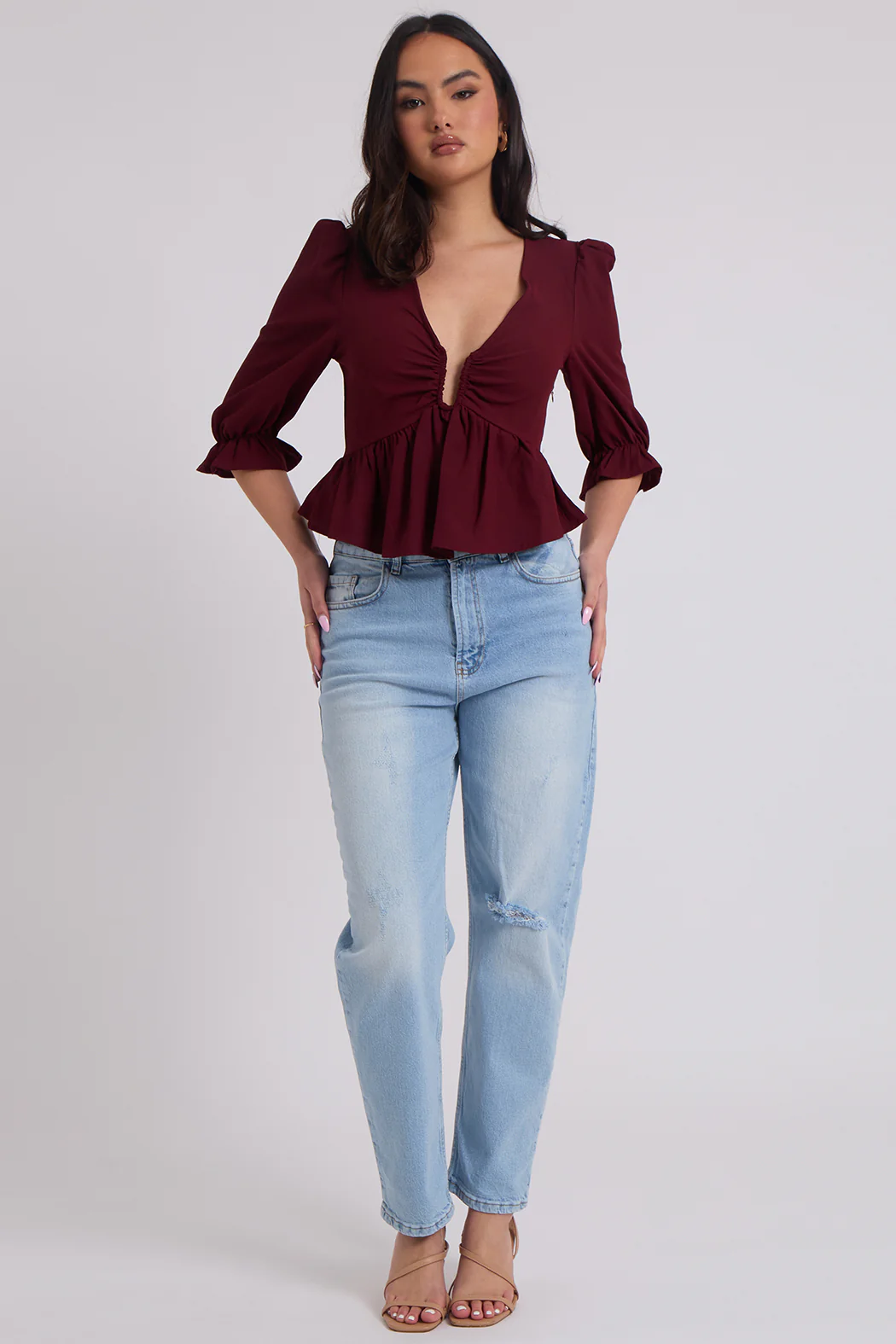 Our Collette U Bar Peplum Top is perfect for when you want to wear jeans and a nice top! Add statement jewellery and killer heels for a totally glam look.