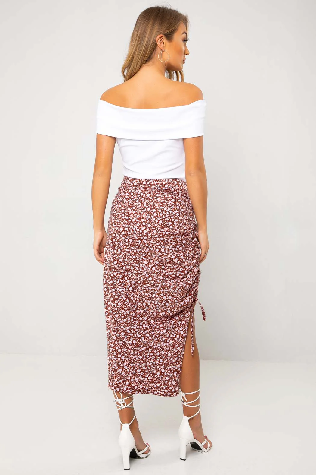 Marissa Lilac Floral Drawstring Side Split Midi Skirt