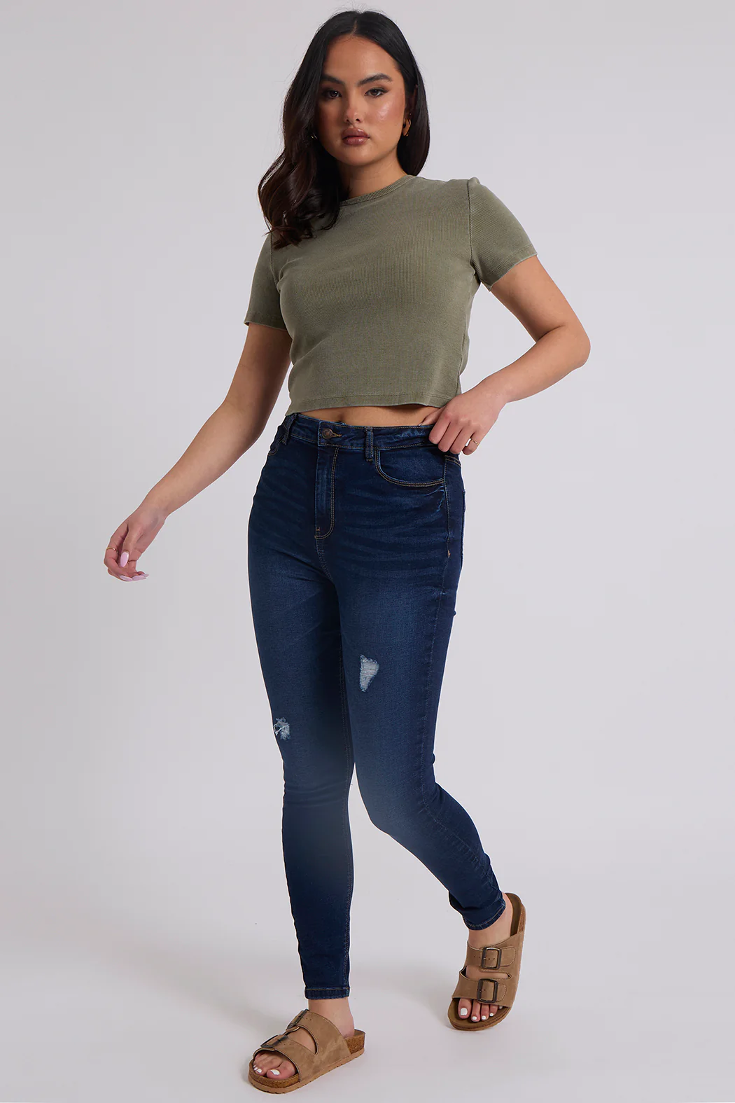 -70%Max Dark Blue High Waist Distressed Skinny Jean—