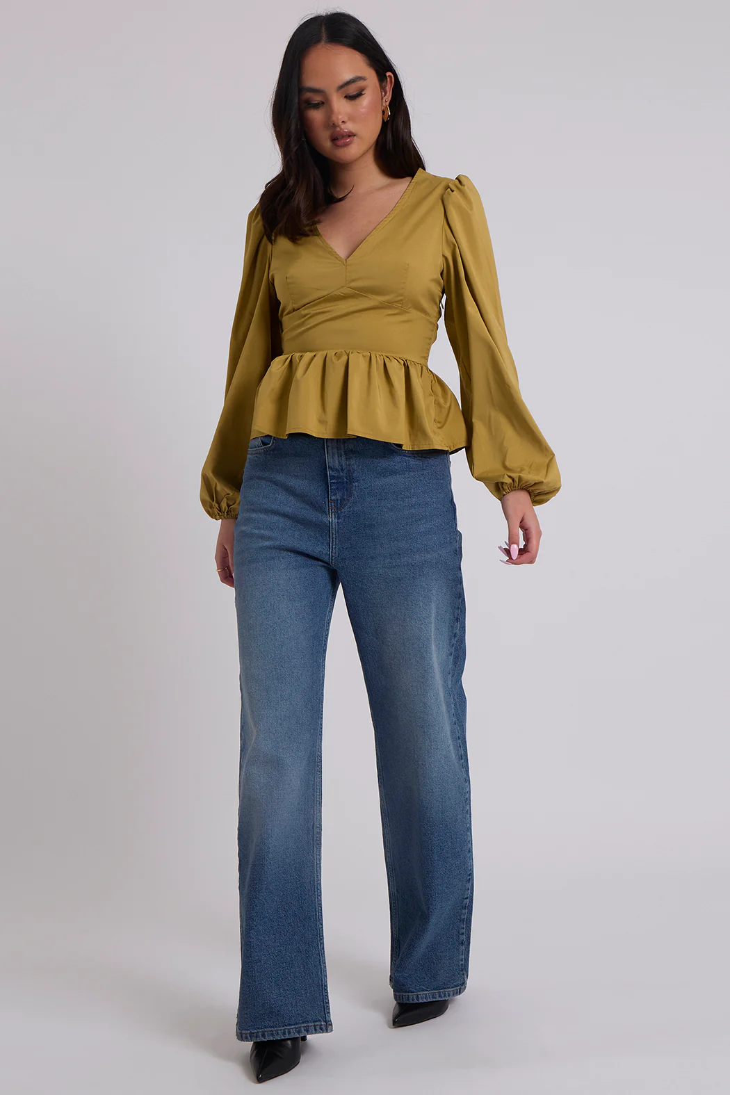 Add some colour to your summer wardrobe! Our Olive Puff Sleeve Peplum Top can be teamed with our Coated Shaper Jean for an effortlessly glam look, or dress down with our straight leg jeans.