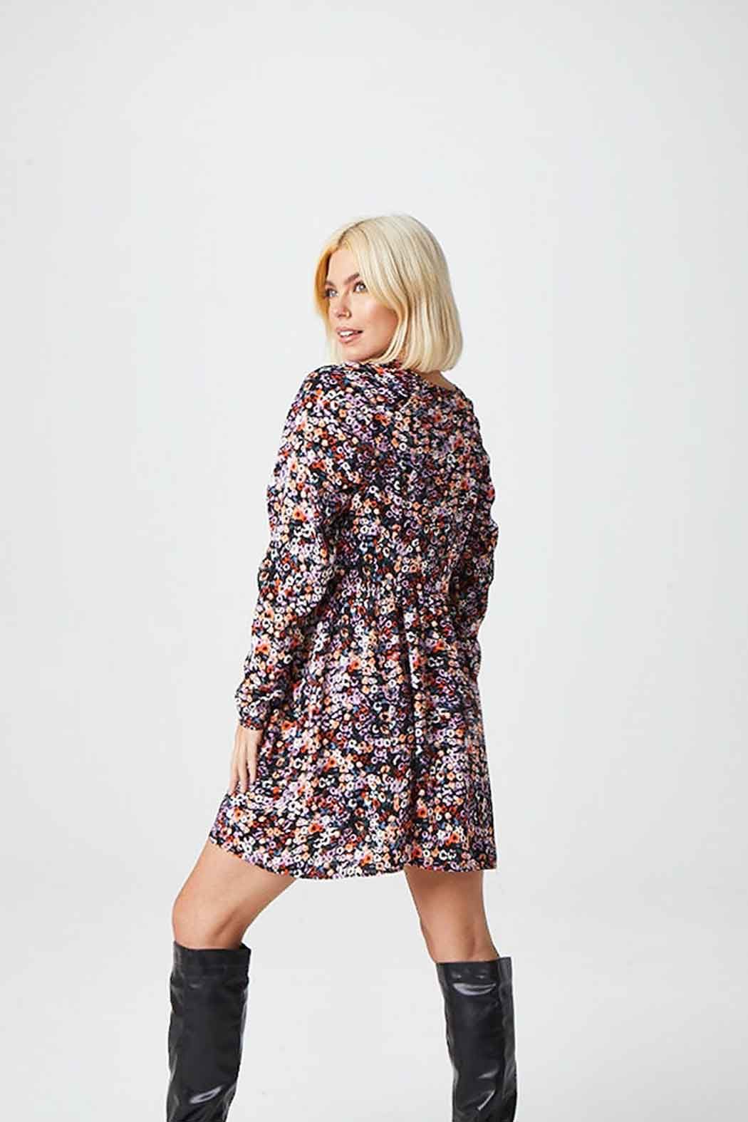 The perfect summer mini dress featuring a flawless fitted silhouette with a floral pattern and V neck design.