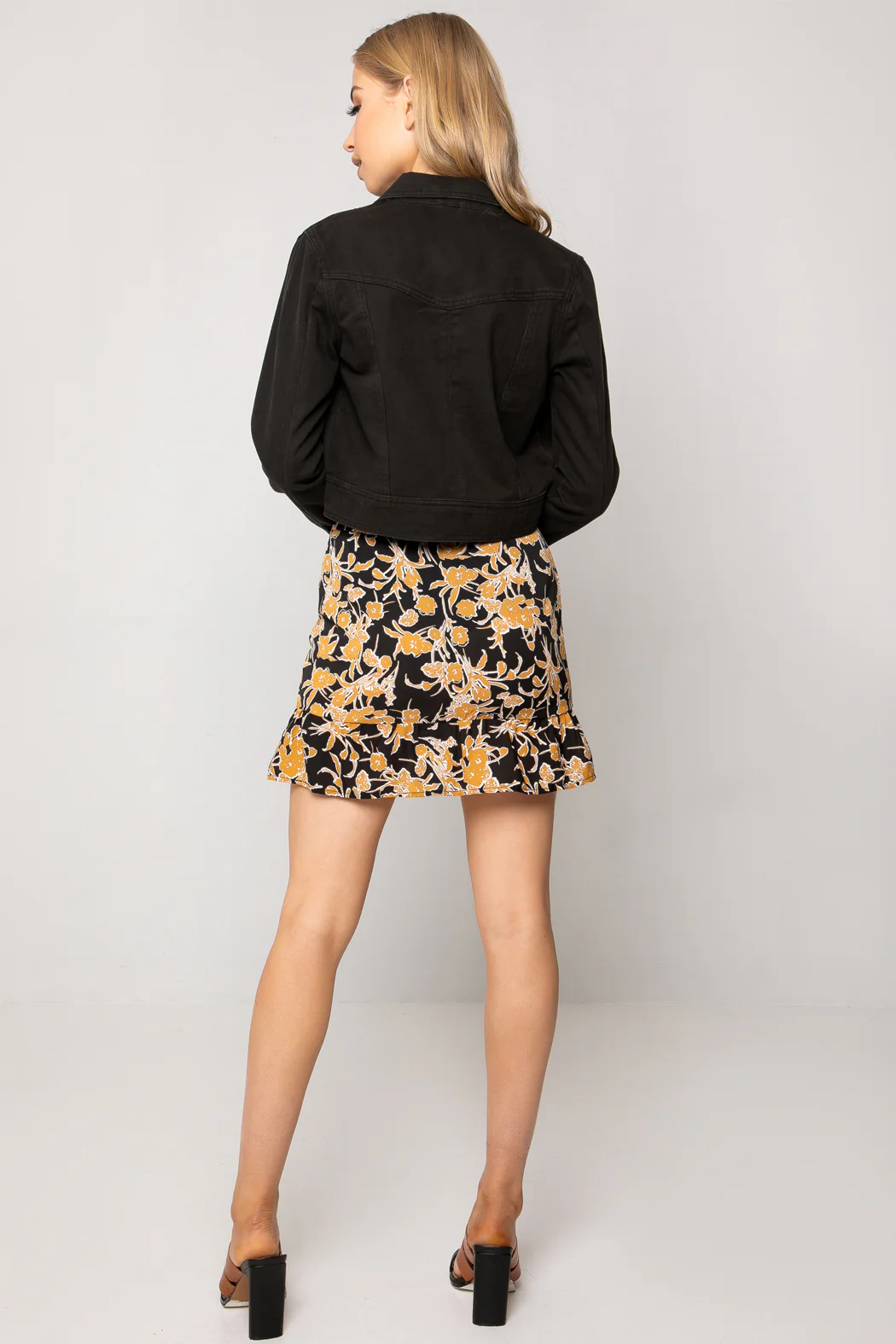 Siren Black and Mustard Floral Tie Front Peplum Mini Skirt