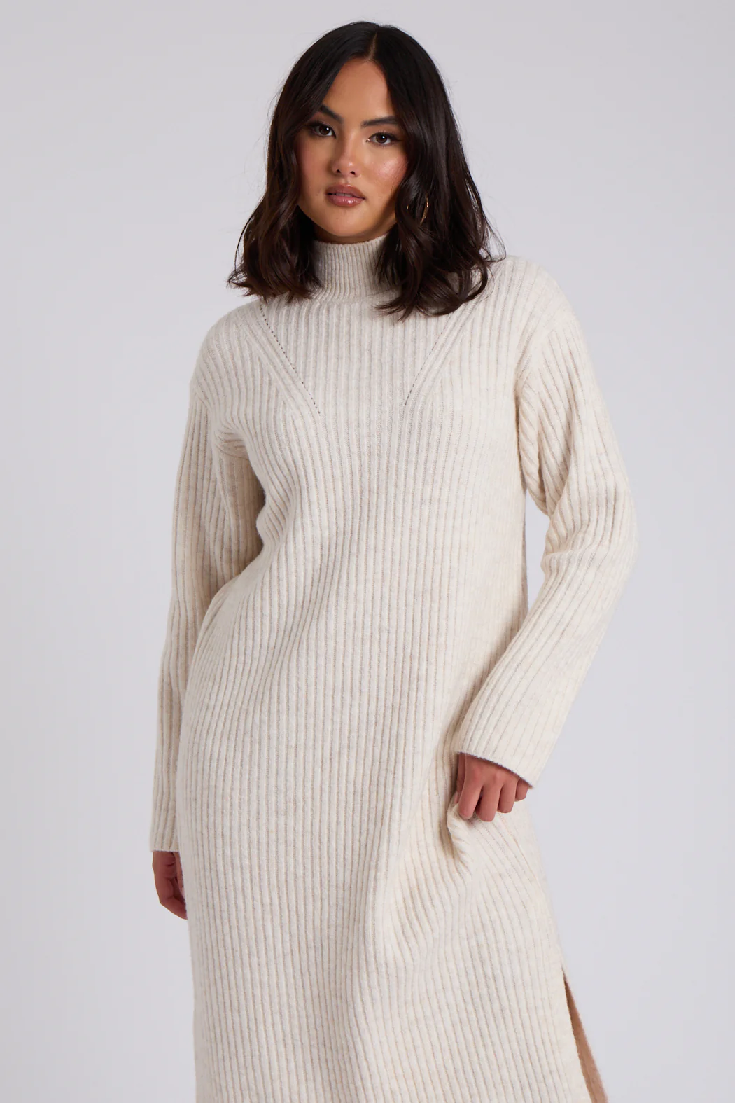 Stand Neck Dress Ribbed